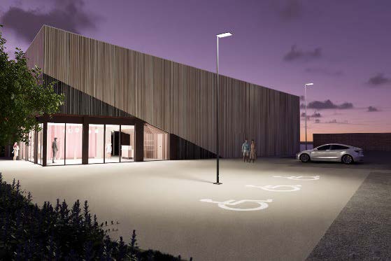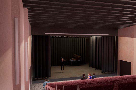 Le nouveau théâtre deviendra la scène principale, il est composé d’un hall, d’un vestiaire, d’une salle de spectacle de 161 places assises face à une scène de 11 m de large x 8 m de profondeur x 5 m de hauteur, une régie, un bureau, des loges, des réserves, sanitaires et locaux techniques, un parvis et une aire de stationnement végétalisé de 50 places.